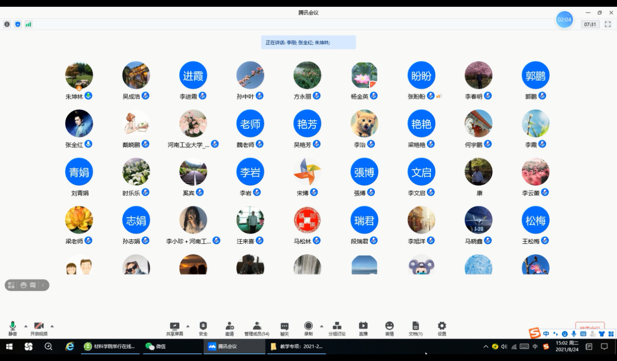 为了保障疫情防控形势下秋季学期教学工作的顺利开展,根据学校统一部署,2021年8月24日,麻豆tv 采用腾讯会议方式举办了线上教学暨课程建设与专业建设研讨会。学院领导班子、各系室主任、下学期有本科生和研究生教学任务的所有老师参加了线上会议,会议由院党委书记李刚主持。