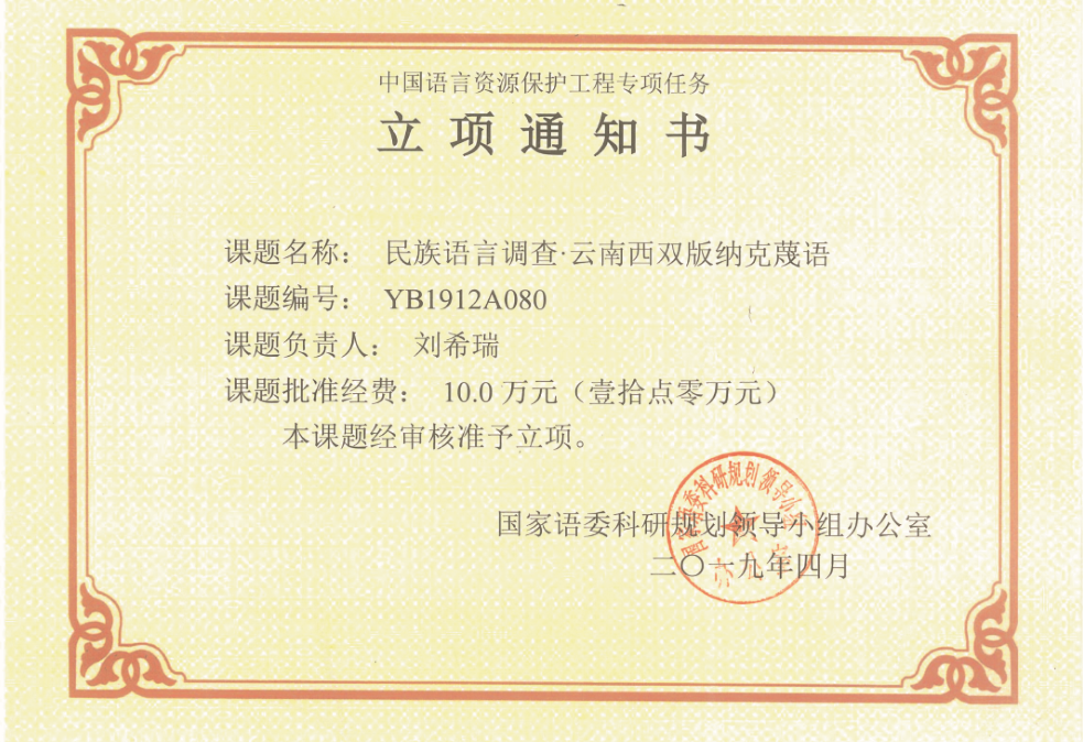 教育部和其他部委社科项目——民族语言调查·云南西双版纳克蔑语
