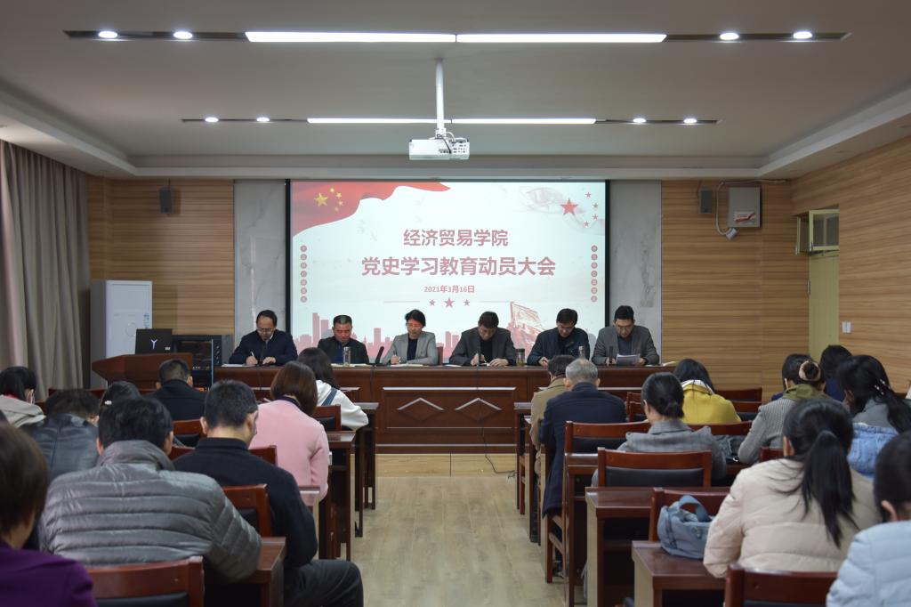 关于开展党史学习教育的会议精神,结合学院十四五发展规划要点和本年度重点工作,解读了学院的实施方案,并就全院扎实开展党史学习教育提出六点要求:一要抓好专题学习,做到学史明理、强化理论武装,要做到认真学习、联系实际学习,不断提高思想理论水平;二要抓好政治引领,做到学史增信、坚定发展信心,要以开展党史学习教育为契机,进一步增强在十四五期间创建一流经贸学院的信心和决心;三要抓好专题培训,做到学史崇德、传承红色基因,要利用好周边的红色资源,发挥线上线下教育优势,积极开展主题党日活动;四要抓好学习研讨,做到学史力行、锤炼过硬党性,学院党员干部在学习时要将学习心得体会与党员本职工作相结合,与院系发展相结合,为全院师生谋发展办实事;五要抓好专题民主生活会、组织生活会,做到鉴往知来、勇担职责使命,要深入交流学习,查摆差距不足,明确努力方向;六要抓好四个结合,做到知行合一,献身学院发展。